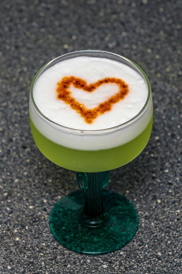 Shake once without ice and once with ice, strain into a cocktail coupe, and garnish with bitters (Jerry Thomas Decanter) and grapefruit oil from a twist.