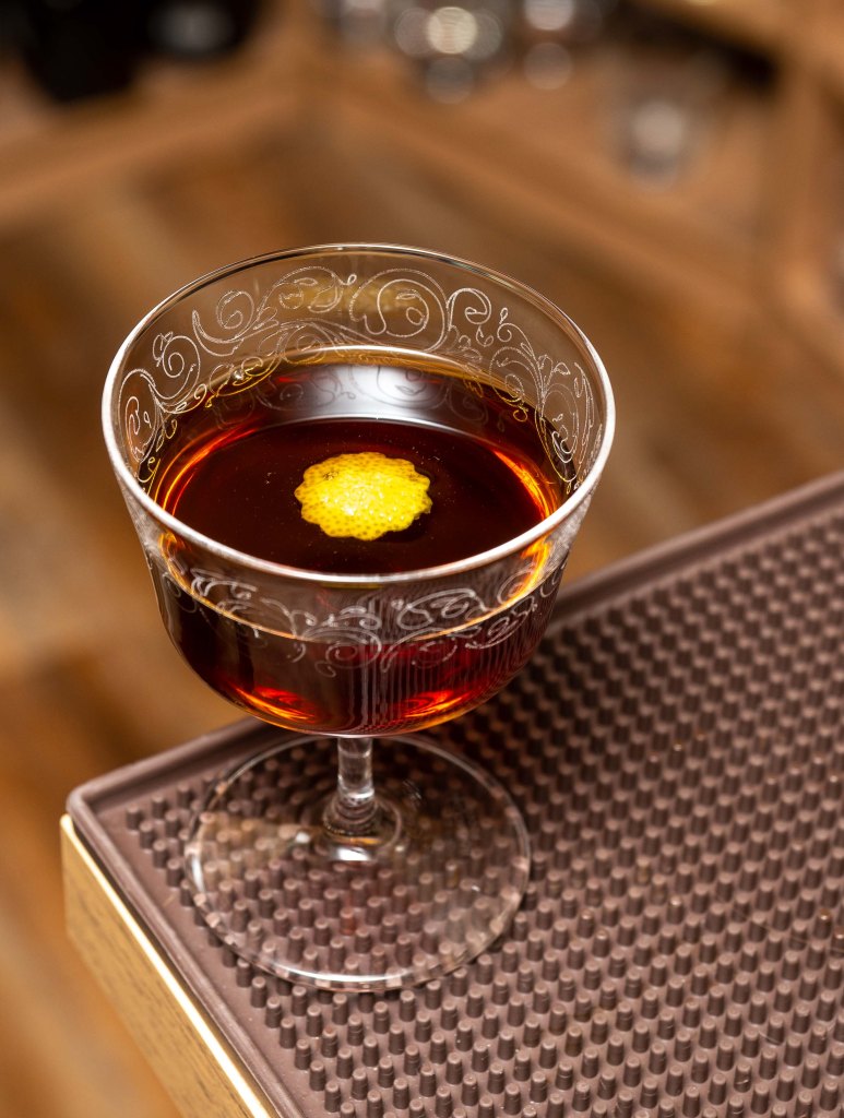 Stir with ice, strain into a coupe, and garnish with a lemon twist.